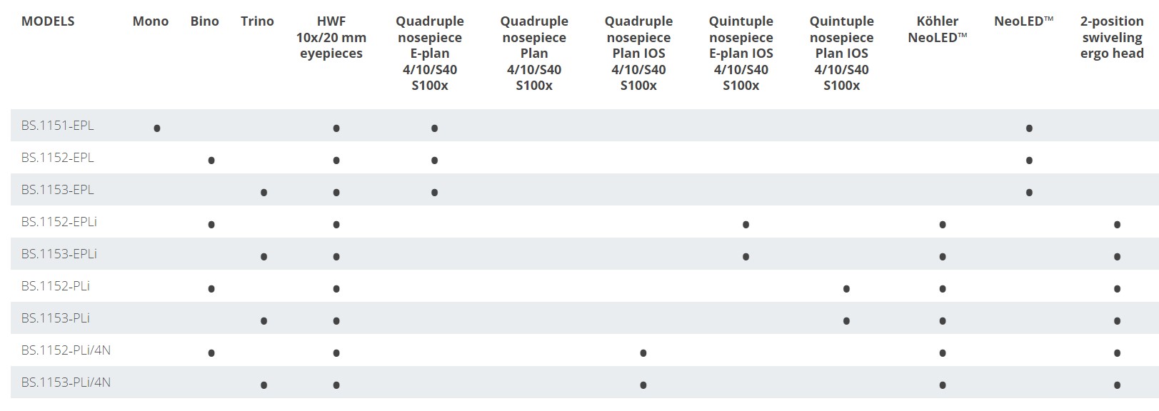 Thiết kế của bScope vừa tiện dụng vừa phát triển. Thị kính có thể điều chỉnh độ cao và điều khiển mức thấp giúp giảm thiểu sự mệt mỏi trong các buổi làm việc dài và do đó mang lại sự thoải mái hơn cho các nhà hiển vi học. Có sẵn các mô hình trường tối gương phản chiếu theo pha và cardioïd. Kích thước chắc chắn và nhỏ gọn của bScope với Hệ thống lưu trữ cáp cho phép có nhiều không gian làm việc hơn, vận hành an toàn hơn và lưu trữ dễ dàng