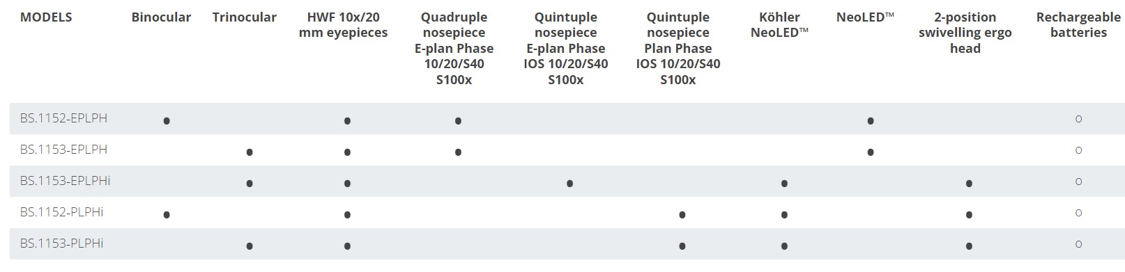 Kính hiển vi được trang bị tốt của dòng bScope được sử dụng rộng rãi trong các trường trung học, đại học, phòng thí nghiệm vừa và nhỏ và cho các ứng dụng thú y. Ngoài thiết kế công thái học tuyệt vời, những chiếc kính hiển vi mạnh mẽ và giá hấp dẫn này có sẵn trong một số cấu hình với thị kính và vật kính HWF 10x/20 mm cho trường sáng, tương phản pha và trường tối