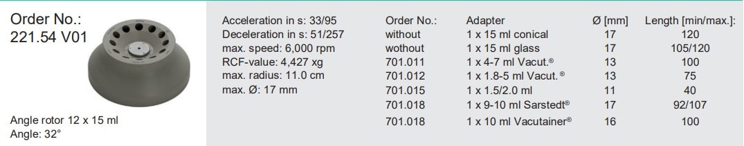 - Rotor: 12 x 15 ml