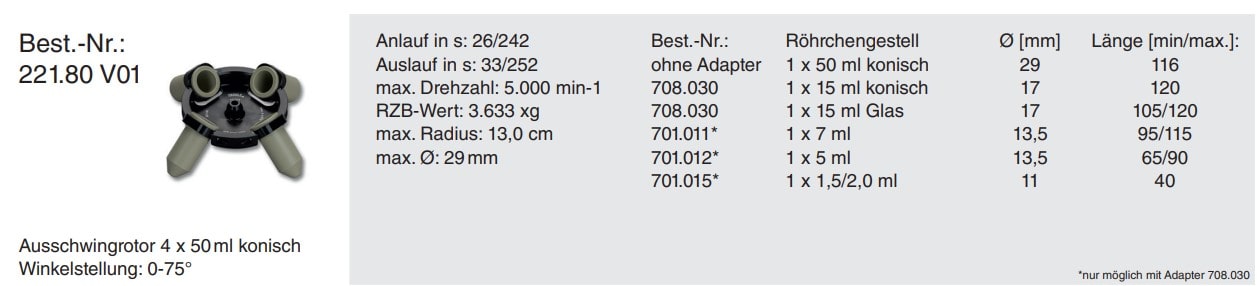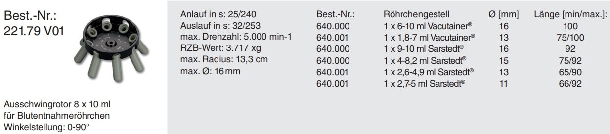 Ausschwingrotor 8 x 10 ml für Blutentnahmeröhrchen