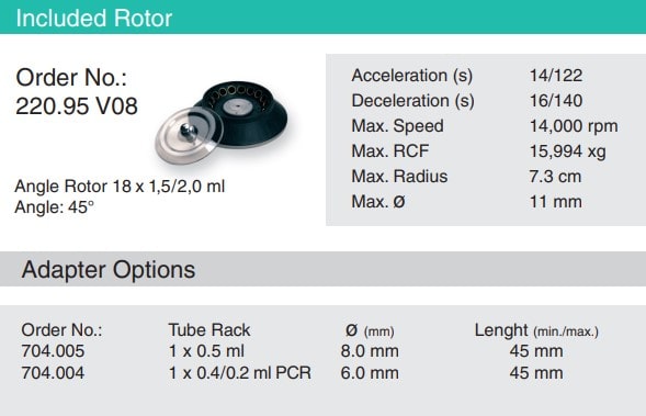 - Tốc độ li tâm: tối đa 14,000 vòng/phút