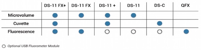 DS-11+: Quang phổ UV-VIS, dùng cả cuvet và thể tích micro, có thể nâng cấp huỳnh quang (nếu mua thêm module FX)