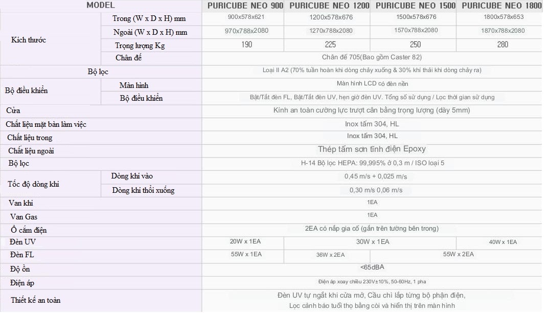 - Đáp ứng nhu cầu của các phòng thí nghiệm đòi hỏi mức độ an toàn cấp 2